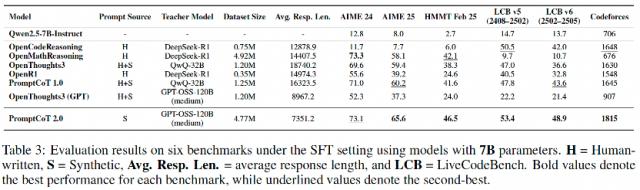 这一结果充分说明,相较于人工数据,合成数据具备更强的可扩展性,未来有望成为推动大模型推理能力提升的核心动力。与此同时,团队使用的教师监督(来自 GPT-OSS-120B-medium)在表达上更为紧凑(平均推理长度更短)。在保证高质量的前提下,较短的输出不仅减少了推理开销,也为更高效的大模型训练和推理提供了新的可能。