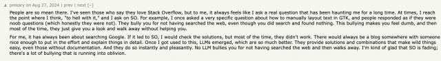 不少程序员直言,社区的氛围有时会令人不舒服,他们现在遇到问题更愿意咨询 AI:
