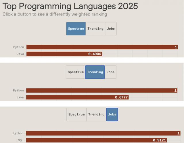 在刚刚出炉的 IEEE Spectrum 2025 编程语言排行榜上,Python 再次斩获最受欢迎的编程语言。