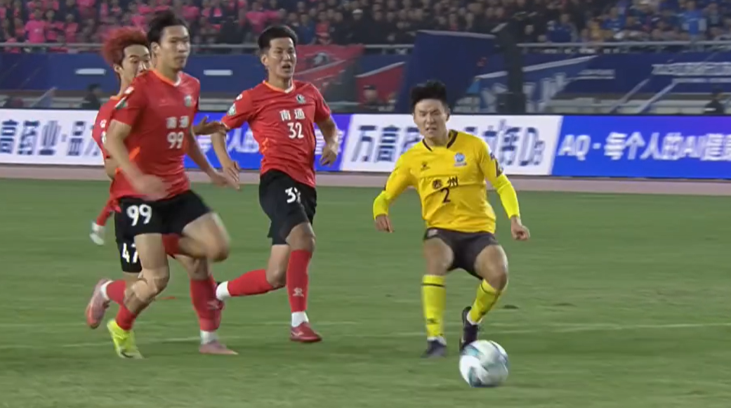 上半场,南通队基本控制了比赛局面,创造更多威胁攻势,不过得势不得分,5次射门2次打正,泰州队2次射门没有打正。第20分钟,尹韩龙内切打门太正被门将没收。第26分钟,南通队任意球开至禁区,李贤成近距离打门被挡出。